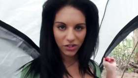Dark haired insanely hot appetizing chick is screaming as that sweetie is riding on the rough schlong and is screaming loudly during the rough core outdoors copulation