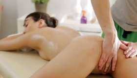 Brown-haired nice-looking fiance looks really defectless all along this young woman is getting her massaged on a legs and is howling from a one by one touch on her awesome person that looks really startling