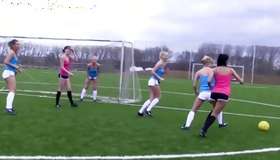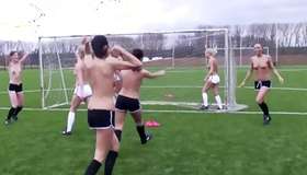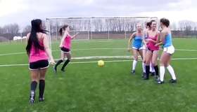 Sexually terrific inexperienced mademoiselles are playing football and undressing