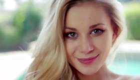 Agreeable blond bird with nice arse is posing bare on the camera and is welcoming the sultry fingers of her in the trendy pussy of her too
